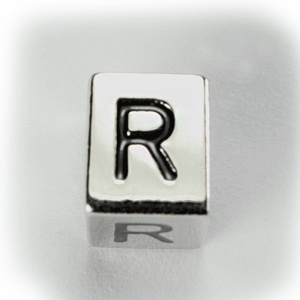 Beads, Alphabet Beads in Metal 5.5×7.5mm (width x side), holesize: 3mm – Letter R