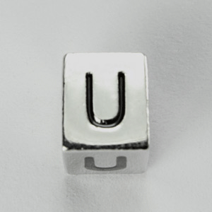 Beads, Alphabet Beads in Metal 5.5×7.5mm (width x side), holesize: 3mm – Letter U