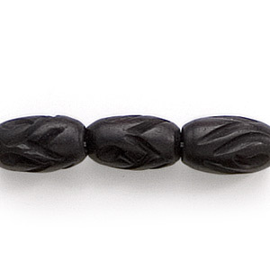 Bead, Bone 12x7mm Oval Tube Carved with design of leaves in Dyed Black (Hole Size 2mm)