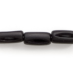 Bead, Bone Tube 12x7mm Carved with Grooves in Dyed Black (Hole Size 2mm)
