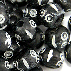 The perfect carved bone beads in black, hand carved with an interesting pattern of circles and lines to reveal the natural bone. Perfect to string these beads on leather or waxed cotton cord. This is always a popular bead.