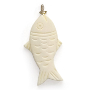 Pendant, Bone 32x20mm (thickness 4.5mm) Fish Shape with Loop – White