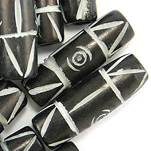 Bead, Bone 21x10mm Carved Tube – Black/White