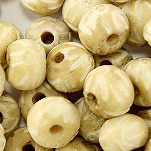 Bead, Bone 8mm Round Carved – White/Brown