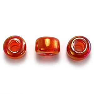 Sold Per: 50 grams (approx. 62 beads) Colour Cat: Red Shape: Crow / Rola Size: 9mm Finish: Iris | Transparent SKU: 38-4117