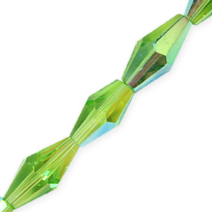 Bead, Helenski Crystal Art.8020 12x6mm Long Bicone – Peridot AB Green