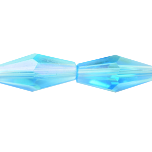 Bead, Helenski Crystal, 16x8mm Long Bicone – Aquamarine AB