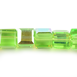 Bead, Helenski Crystal, 8x8mm Cube – Peridot AB Green