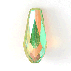 Bead, Helenski Crystal Art.8120 17X7mm Teardrop – Light Olivine AB