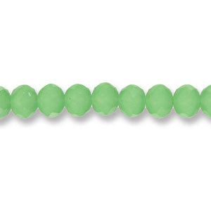 These versatile 6mm x 8mm rondelles are hand cut and polished with such precision, You will be blown away by how they sparkle! Perfect as spacers, companions to Lampwork, or in embellishment projects, cut glass is an affordable way to inject shine into your life. Like an opal, these brilliant green beads have a milky, opaque quality that is reminiscent of the mysteries of jade.
