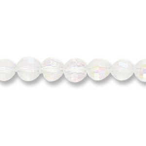 These stunning 8mm rounds are hand cut and polished with such precision, You will be blown away by how they sparkle! Perfect on their own, or as companions to Lampwork, smaller beads, or in embellishment projects, cut glass is an affordable way to inject shine into your life. These beads are like iridescent ice, shimmering with a rainbow of colour across their surface. Clear Crystal AB is a staple for jewelry makers; be sure to stock up, as these are beads you will use often!