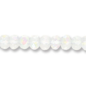 These versatile 6mm x 8mm rondelles are hand cut and polished with such precision, You will be blown away by how they sparkle! Perfect as spacers, companions to Lampwork, or in embellishment projects, cut glass is an affordable way to inject shine into your life. These beads are like iridescent ice, shimmering with a rainbow of colour across their surface. Clear Crystal AB is a staple for jewelry makers; be sure to stock up, as these are beads you will use often!