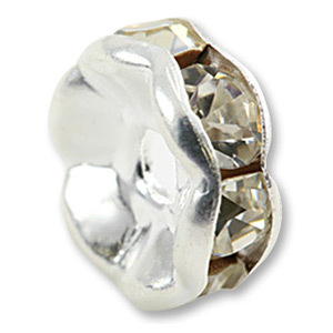 Beads, Rhinestone Rondelle, Silver-plated Brass, 8mm, Crystal Clear, Lead Safe