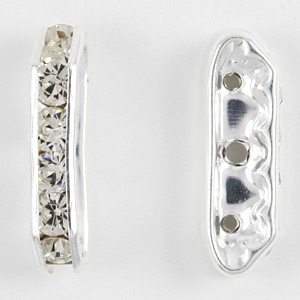Spacer, Rhinestone Bridge Spacer 20x6mm with 3 holes, Silver plated brass – Crystal Clear