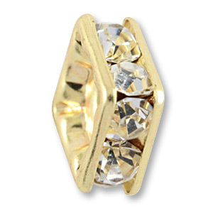 Bead, Rhinestone Squaredelle, 8mm Gold plated brass – Crystal Clear