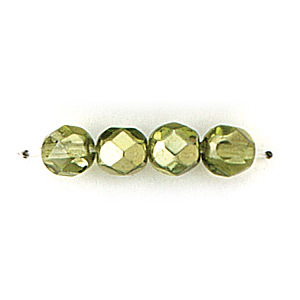 Bead, Czech firepolish, 6mm mirror metallic, OLIVINE