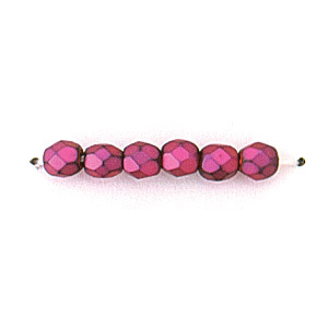 Bead, Czech firepolish, 4mm matte metallic, FUCHSIA
