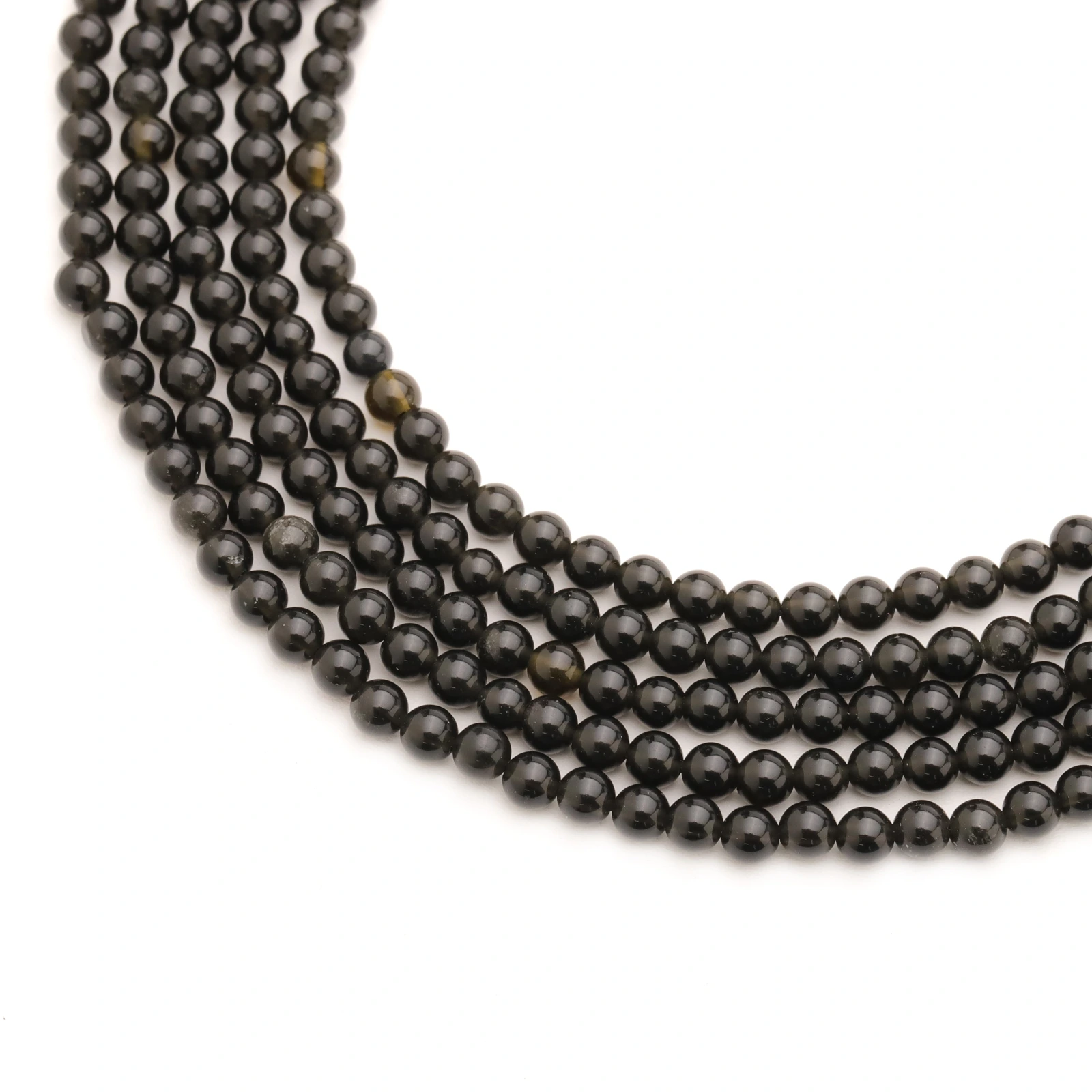 Sold Per: 15" strand (approximately) Colour Cat: Black and White Gemstone Types: Obsidian Size: 3mm Shape: Round SKU: 07-012-1002