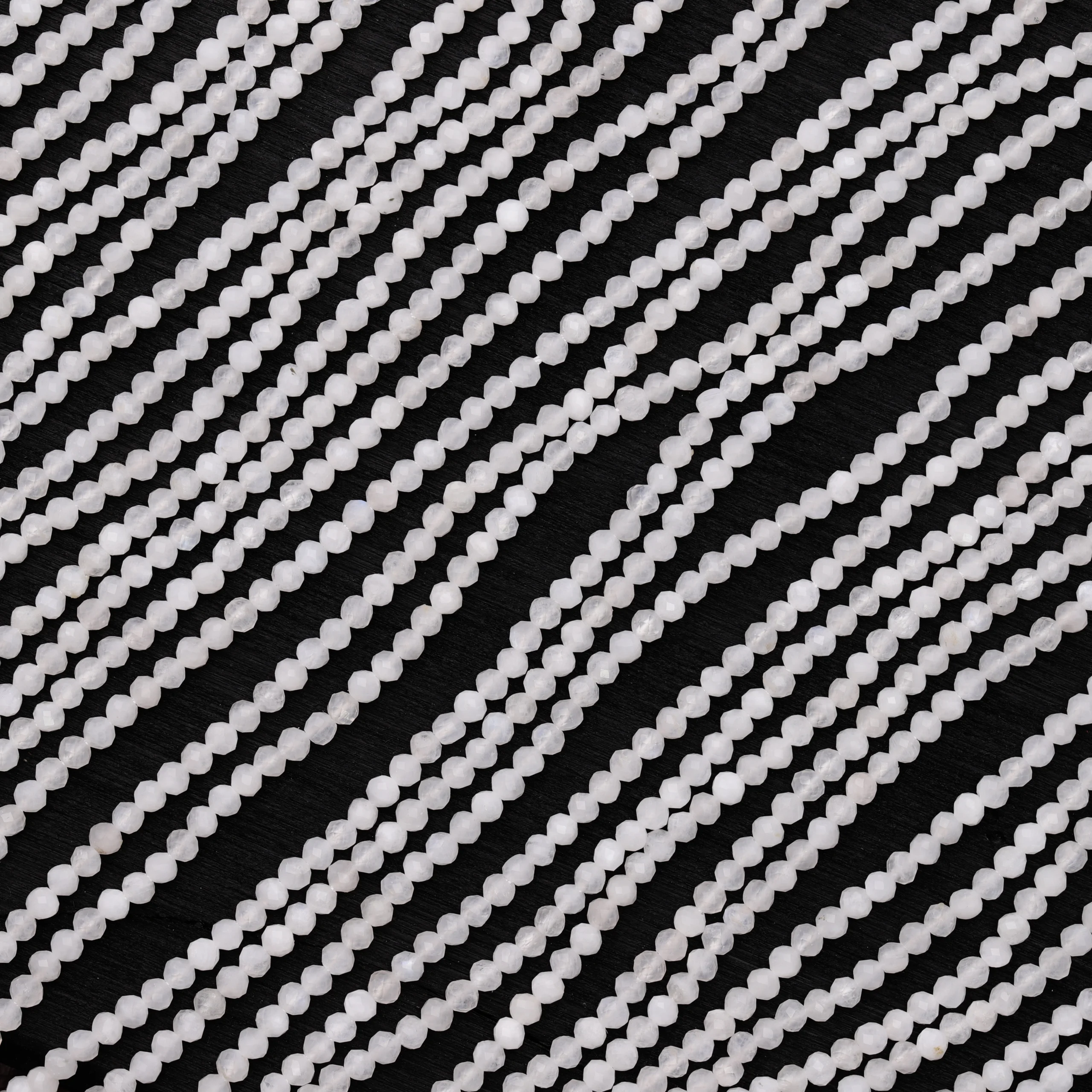 Sold Per: 15" strand (approximately) Shape: Round Gemstone Types: Moonstone Size: 2mm Colour Cat: Black and White SKU: 07-016-1008