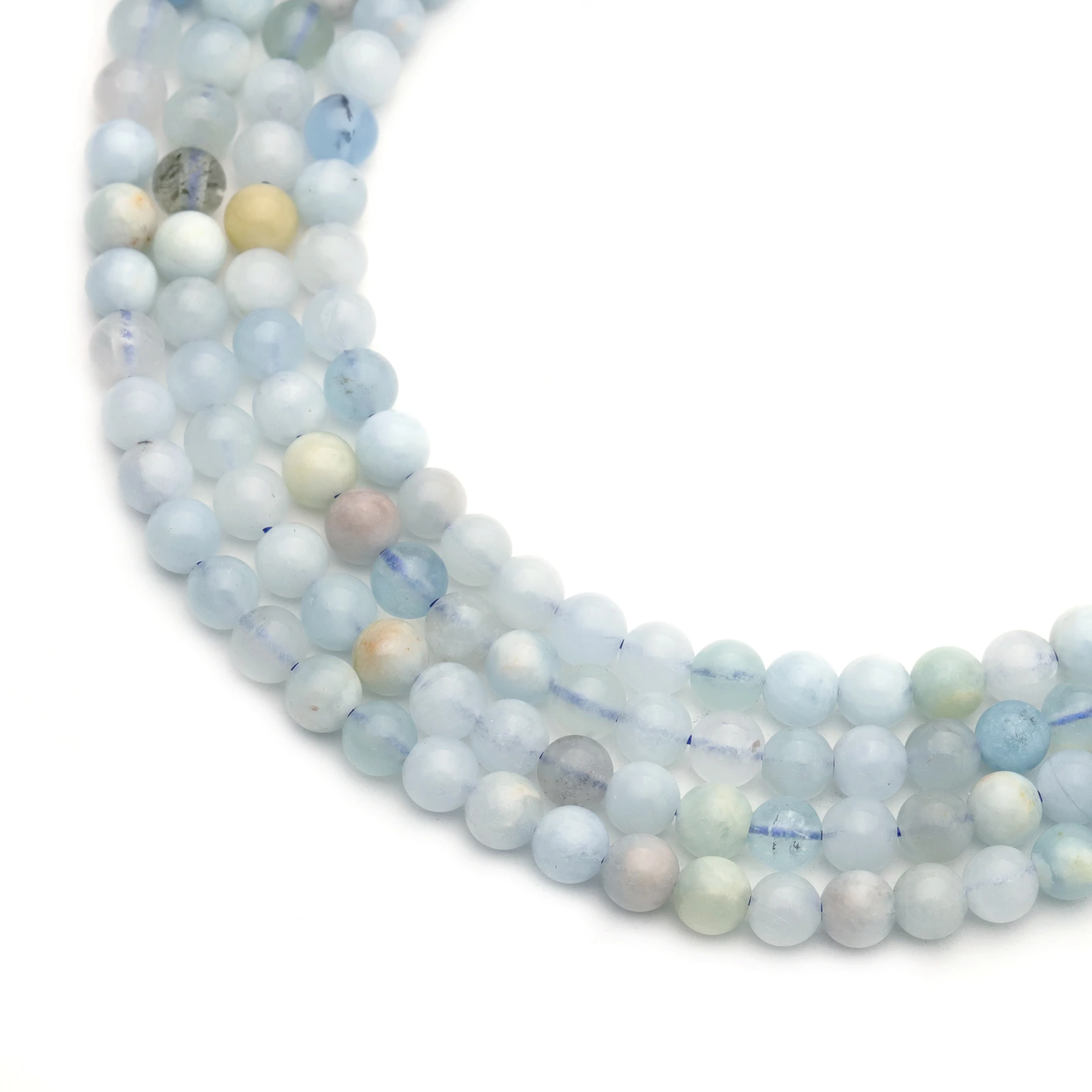 Sold Per: 15" strand (approximately) Colour Cat: Black and White | Blue | Green Gemstone Types: Aquamarine Size: 4mm Shape: Round SKU: 07-021-1005