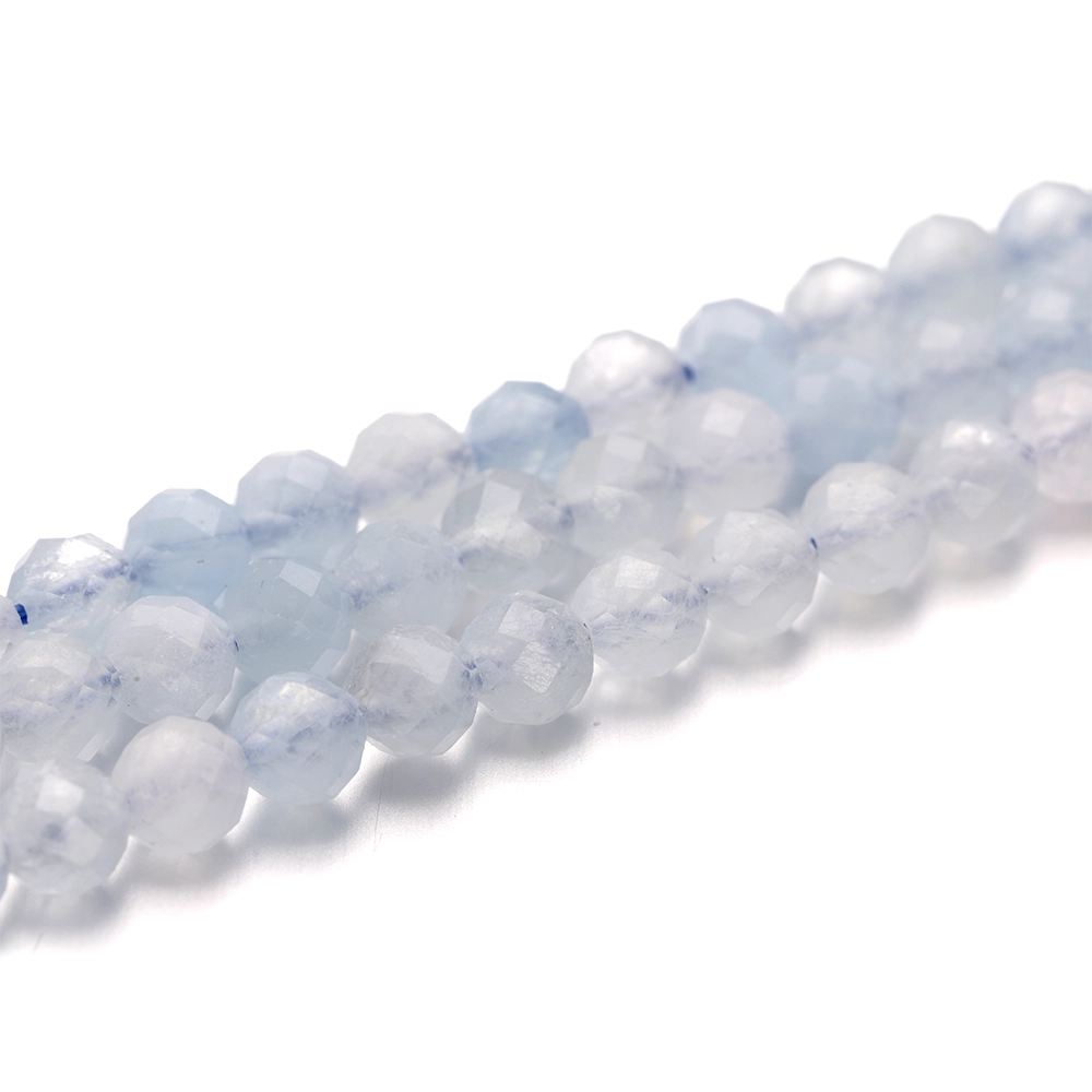 Sold Per: 15" strand (approximately) Shape: Faceted Round Gemstone Types: Aquamarine Size: 4mm Hole Size: 0.6mm Colour Cat: Blue SKU: 07-021-1007