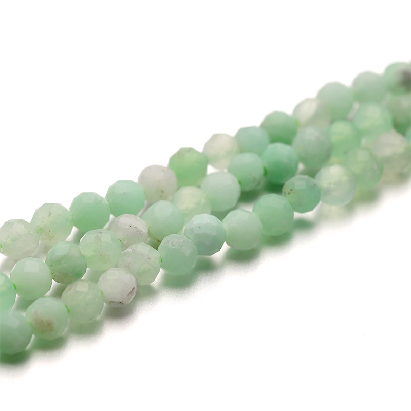 Sold Per: 15" strand (approximately) Shape: Faceted Round Gemstone Types: Chrysocolla Size: 3mm Hole Size: 0.6mm Colour Cat: Green SKU: 07-025-1005