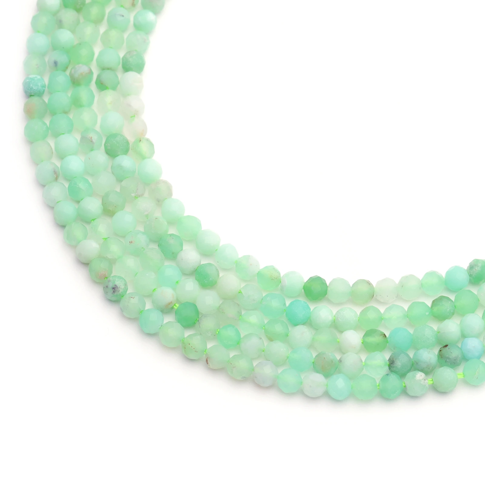 Sold Per: 15" strand (approximately) Colour Cat: Green Gemstone Types: Chrysophrase Size: 3mm Shape: Round SKU: 07-037-1001