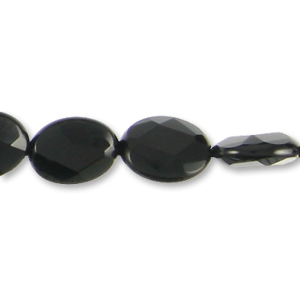 Bead, Black Agate is a Natural Gemstone, 8x10mm Flat Oval Faceted. Sold per 16-inch Strand