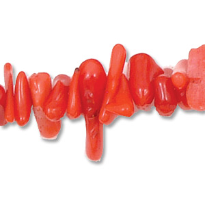 Bead, Bamboo Coral is a dyed stone B Grade Small Chips – Red. Sold per 32-inch Strand