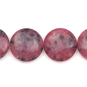 Bead, Spot Jasper Red is a Natural Gemstone, 20mm Disc Puff. Sold per 16-inch Strand