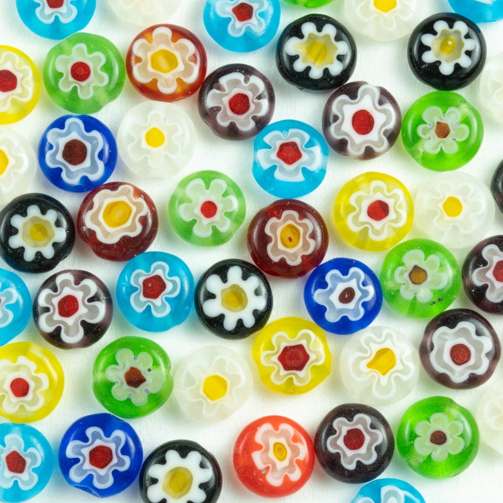 Glass Rounds Flower beads 8mm 16 inc/ st