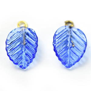 Bead, Drop Glass Leaves with Loop, 13.5x10mm in Blue. Made in Japan