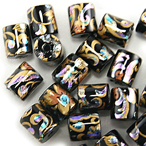 Bead, Paper Decal 6x7mm Tube – Fancy Black. Made in Japan