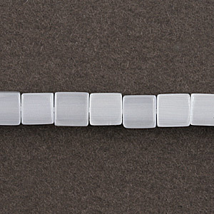 Our grade A Fibre Optic Cats Eye beads are of the highest quality. These smooth 4mm cubes gleam and reflect light back in a band across the surface, giving the Cats Eye its name. Because of the light reflecting properties, these white beads appear to be a crisp opaque white shade.