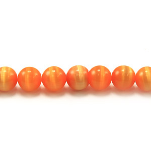 Our grade A Fibre Optic Cats Eye beads are of the highest quality. These smooth 4mm rounds gleam and reflect light back in a band across the surface, giving the Cats Eye its name. Because of the light reflecting properties, these light orange beads appear to be a bright mandarin colour.