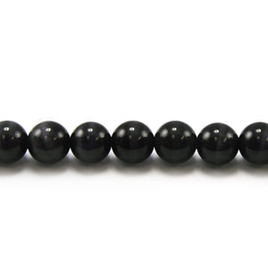 Our grade A Fibre Optic Cats Eye beads are of the highest quality. These smooth 4mm rounds gleam and reflect light back in a band across the surface, giving the Cats Eye its name. Because of the light reflecting properties, these black beads appear to be a smoky, deep charcoal grey.