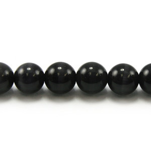Our grade A Fibre Optic Cats Eye beads are of the highest quality. These smooth 6mm rounds gleam and reflect light back in a band across the surface, giving the Cats Eye its name. Because of the light reflecting properties, these black beads appear to be a smoky, deep charcoal grey.
