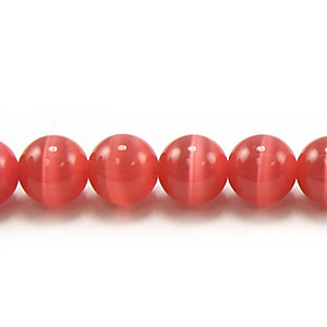 Our grade A Fibre Optic Cats Eye beads are of the highest quality. These smooth 6mm rounds gleam and reflect light back in a band across the surface, giving the Cats Eye its name. Because of the light reflecting properties, these fuschia beads appear to be a vibrant rose pink with a hint of purple.