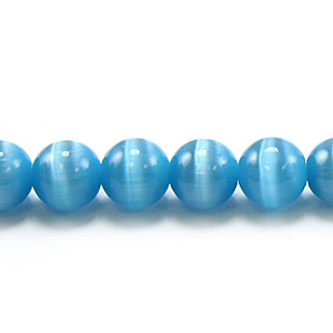 Our grade A Fibre Optic Cats Eye beads are of the highest quality. These smooth 6mm rounds gleam and reflect light back in a band across the surface, giving the Cats Eye its name. Because of the light reflecting properties, these light turquoise beads appear much like the colour of the stone for which theyre named, and lean more towards aqua than the light blue strand.