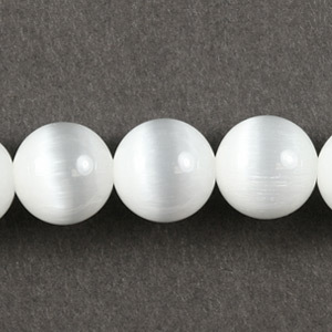 Bead, Cat Eye Fiber Optic, 8mm Round – White