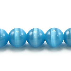 Our grade A Fibre Optic Cats Eye beads are of the highest quality. These smooth 8mm rounds gleam and reflect light back in a band across the surface, giving the Cats Eye its name. Because of the light reflecting properties, these light turquoise beads appear much like the colour of the stone for which theyre named, and lean more towards aqua than the light blue strand.