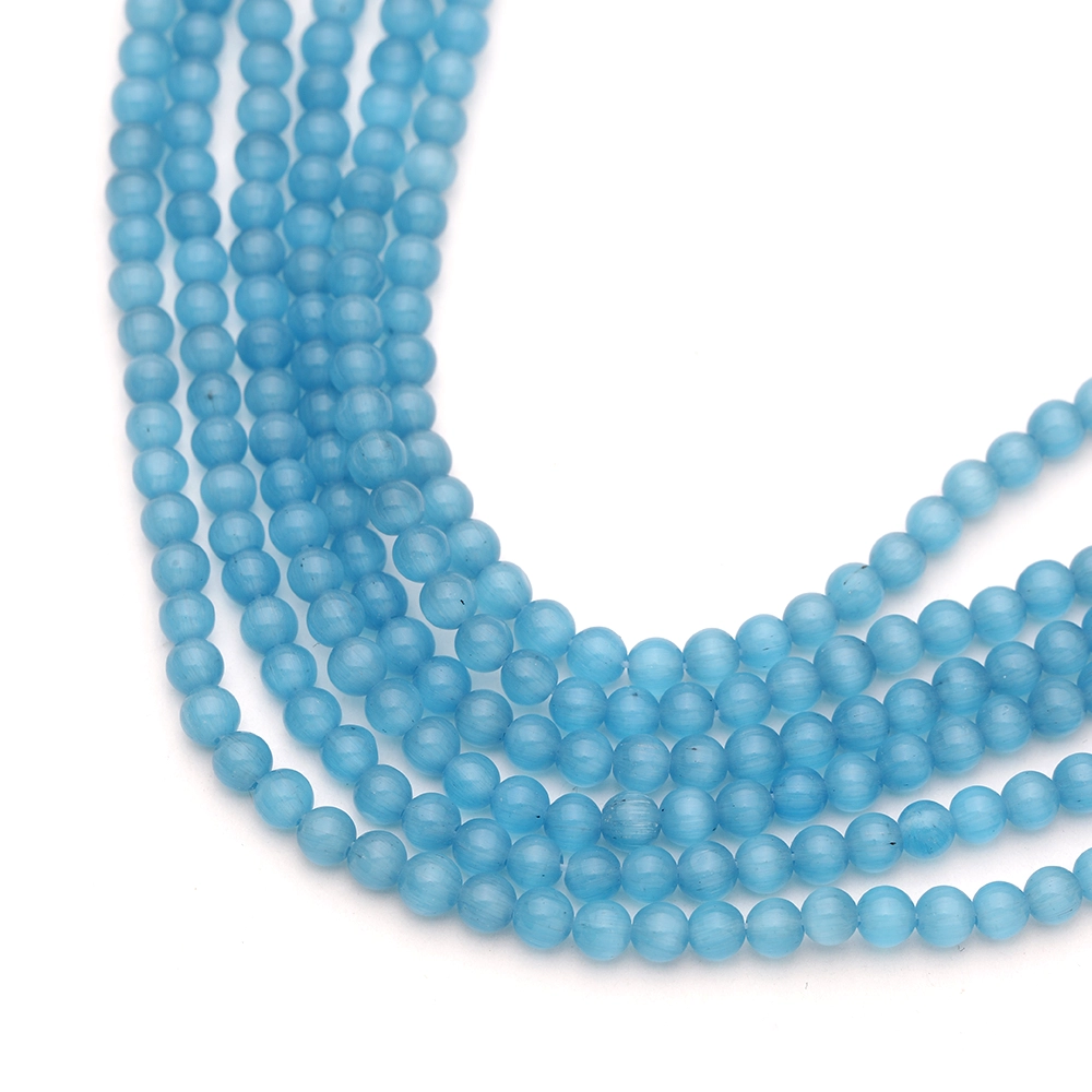 Sold Per: 15" strand (approximately) Colour Cat: Blue Shape: Round Size: 6mm Finish: Fiber Optic Cats Eye SKU: 29-9106