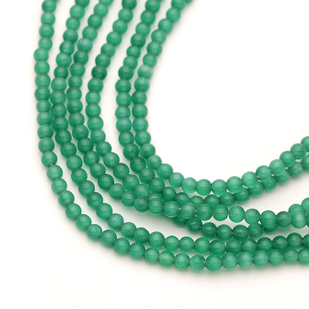 Sold Per: 15" strand (approximately) Colour Cat: Green Shape: Round Size: 6mm Finish: Fiber Optic Cats Eye SKU: 29-9107