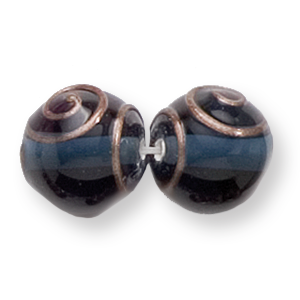 Bead, Preciosa Czech Handmade Lampwork Beads, 12mm Round Gold Spiral – Montana Blue
