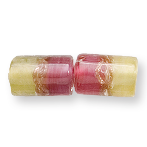 Bead, Preciosa Czech Handmade Lampwork Beads, 12x8mm Tube Two-Tone Goldswirl – Rose/Beige
