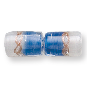 Bead, Preciosa Czech Handmade Lampwork Beads, 12x8mm Tube Two-Tone Goldswirl – Blue/White