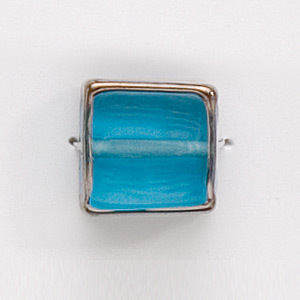 Bead, Preciosa Czech Handmade Lampwork Beads, 13mm Square w/Gold Edge – Light Aqua