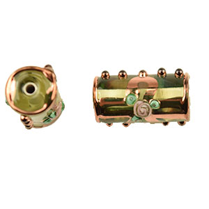 Bead, Preciosa Czech Handmade Lampwork Beads, 16x8mm Tube Goldwire Ribbon Flower – Yellow