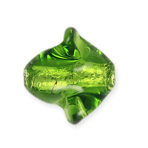 Bead, Preciosa Czech Handmade Lampwork Beads, 21x19mm Oval Twist Silverlined – Olivine