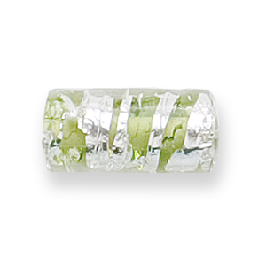 Bead, Preciosa Czech Handmade Lampwork Beads, 16x8mm Tube Silverswirl – Olivine